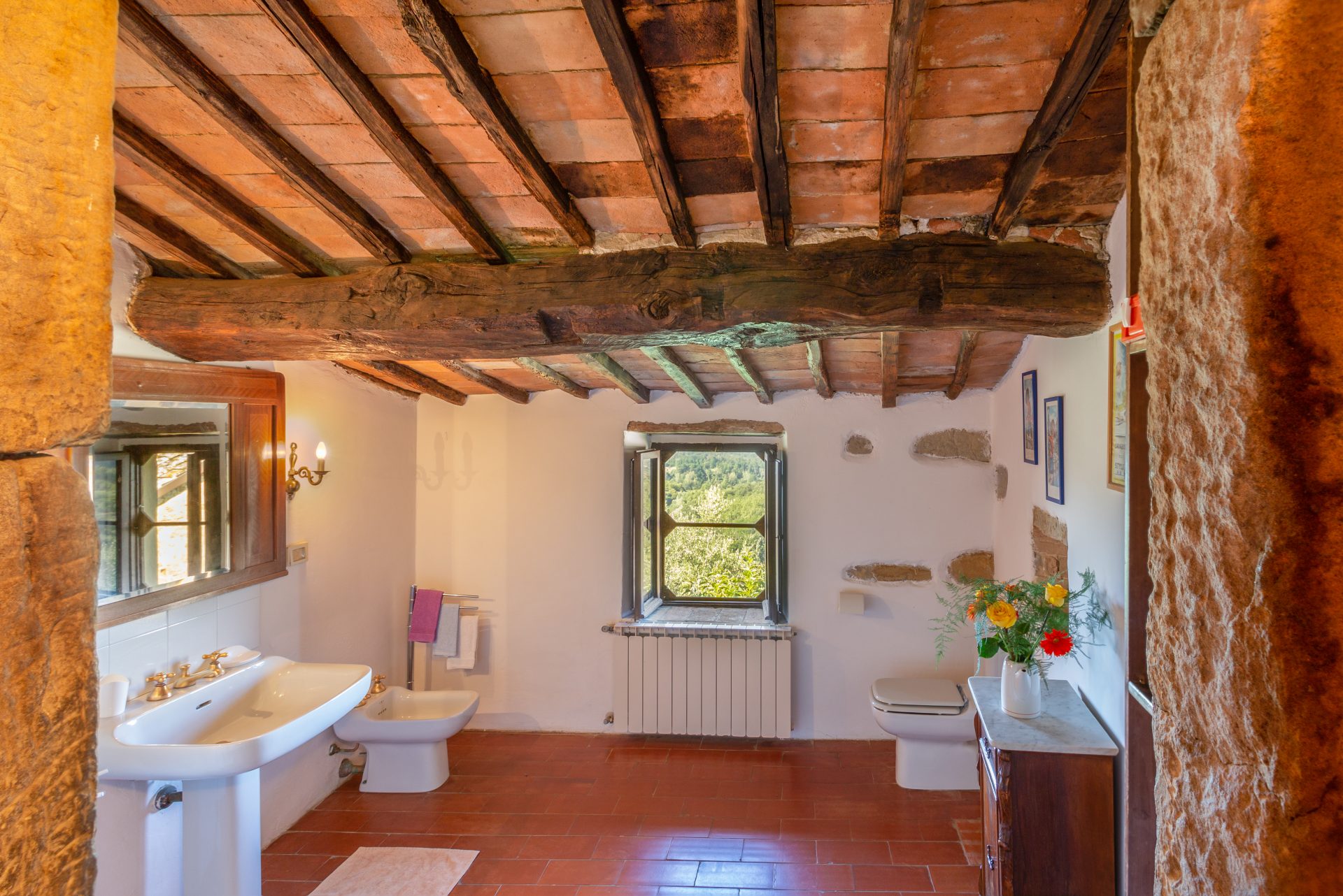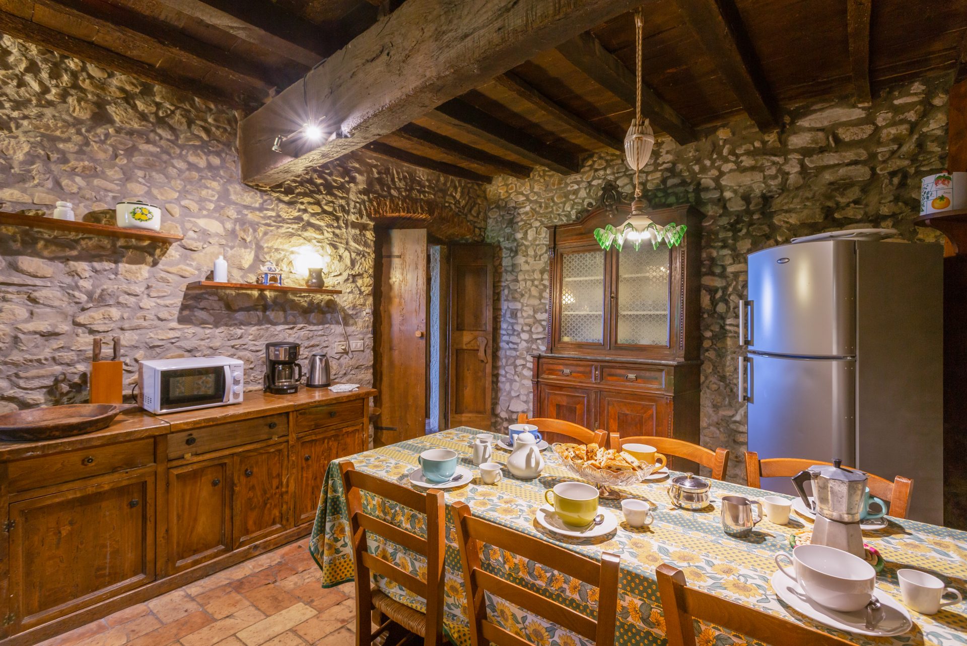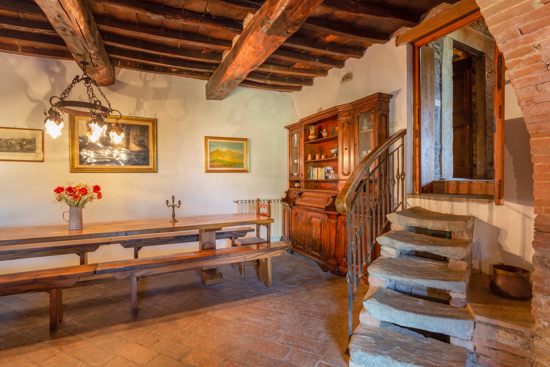 Al piano terreno sono presenti una stanza uso ingresso, una cucina, un grande soggiorno open space dove si trova un grande forno a legno circolare. Dalla cucina si accede ad una antica cantina in pietra. Sempre al piano terra si trova un bagno ed un ampio spazio attualmente ad uso rurale che offre svariate possibilità di uso. Al piano primo sono presenti 4 camere, un disimpegno ed un bagno. Detta unità è munita di tutti i servizi ed impianto di riscaldamento autonomo e si presenta in buono stato di manutenzione.