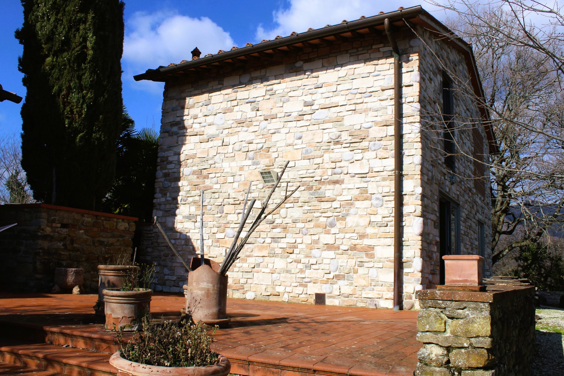 la villetta con facciate in pietra, è il recupero di un vecchio annesso rurale, demolito e ricostruito di sana pianta; si sviluppa su 2 piani fuori terra di mq 54,00 circa ciascuno. Al piano terra un unico grande vano con caminetto, al piano primo abbiamo un grande vano openspace con angolo cottura, un bagno, una camera matrimoniale. Con poche modifiche è possibile ricavare al piano primo la seconda camera matrimoniale, ricreando al piano terra la cucina e sala pranzo. Fanno parte della casa anche circa 1000 mq di giardino ad uso esclusivo, con accesso privato, all’interno del quale ci sono i posti auto. L’immobile gode di una bellissima posizione.